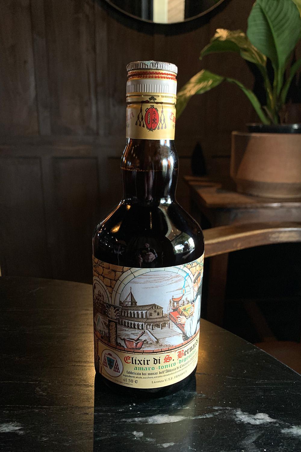 Elixir San Bernardo is from the Abbey of Casamari. It is a bitter digestive tonic from the Cistercian monks' distillery at the Abbey. With a distinctive amaro taste, obtained from the infusion of 20 aromatic and medicinal herbs. Excellent at the end of a meal.